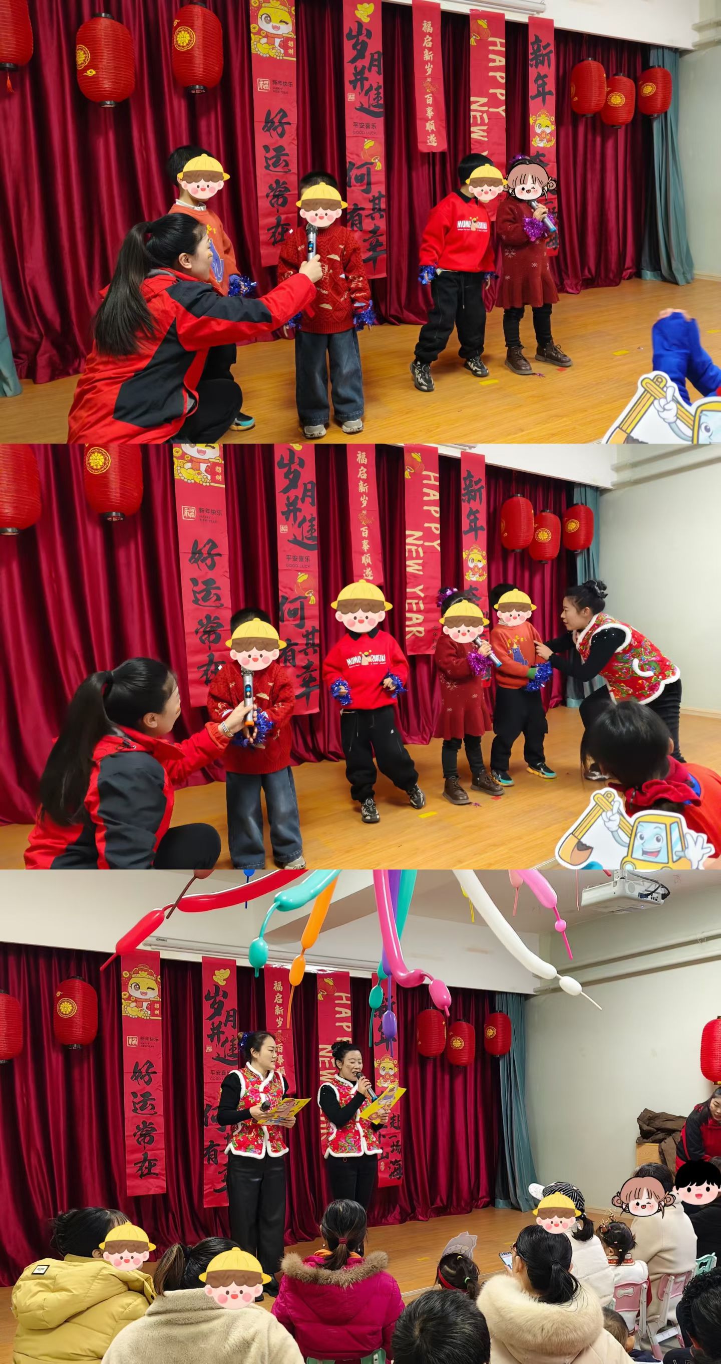 老师将教室装扮成节日的乐园,鲜艳的福字祈愿美好,红色的灯笼像小太阳一样温暖,每个角落都藏着新年的惊喜。
