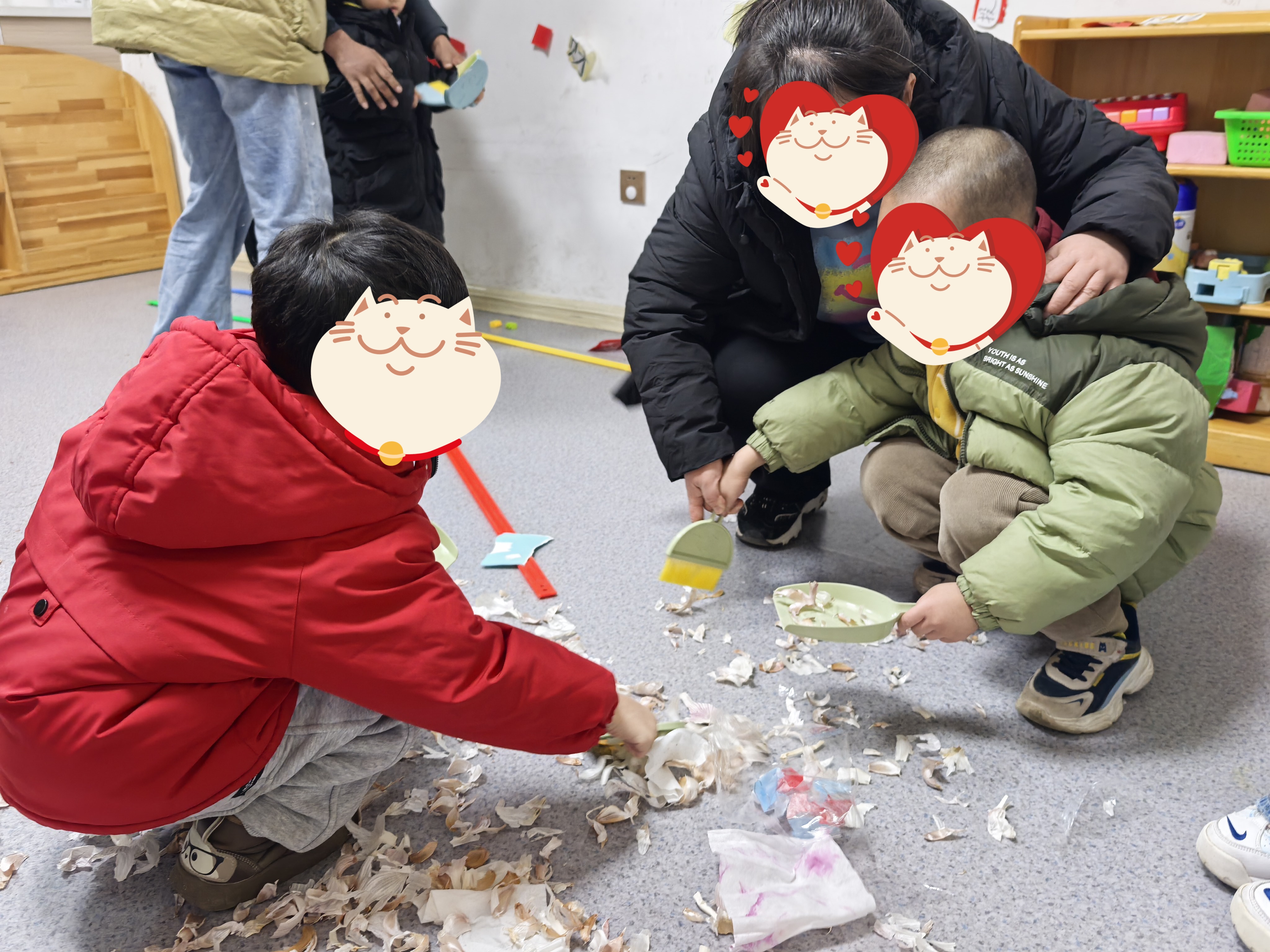 扫房子是每家每户春节前必须要做的事情,寓意干干净净迎新年。孩子们拿起笤帚和簸箕,双手认真配合清扫灰尘和垃圾,用抹布细心擦拭座椅和黑板等,可爱又勤快!