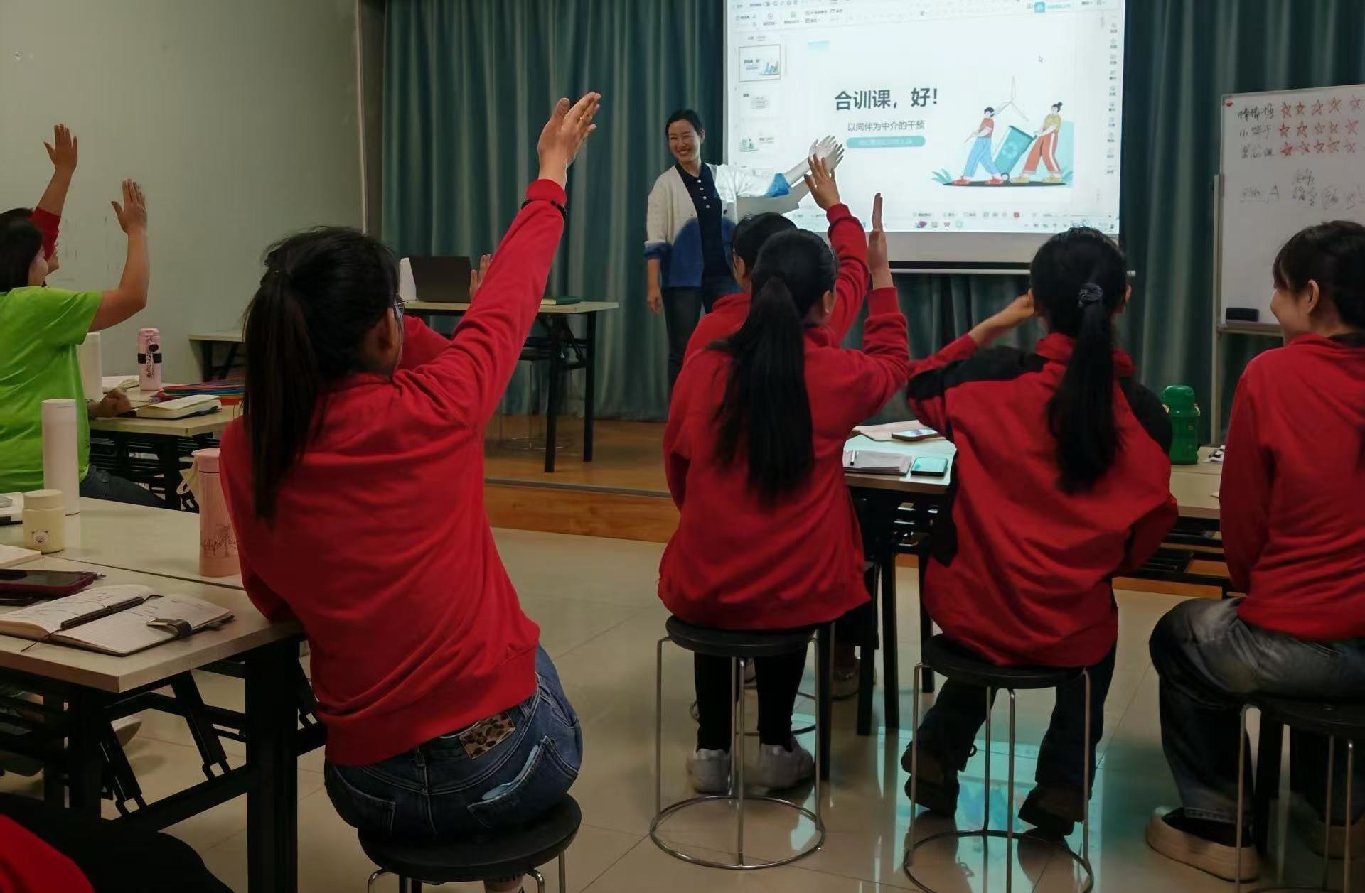 b本月,中心主任武老师为老师们培训了合训课相关知识,帮助老师们梳理课程知识,抓住课程重点,恰当运用合训技巧。