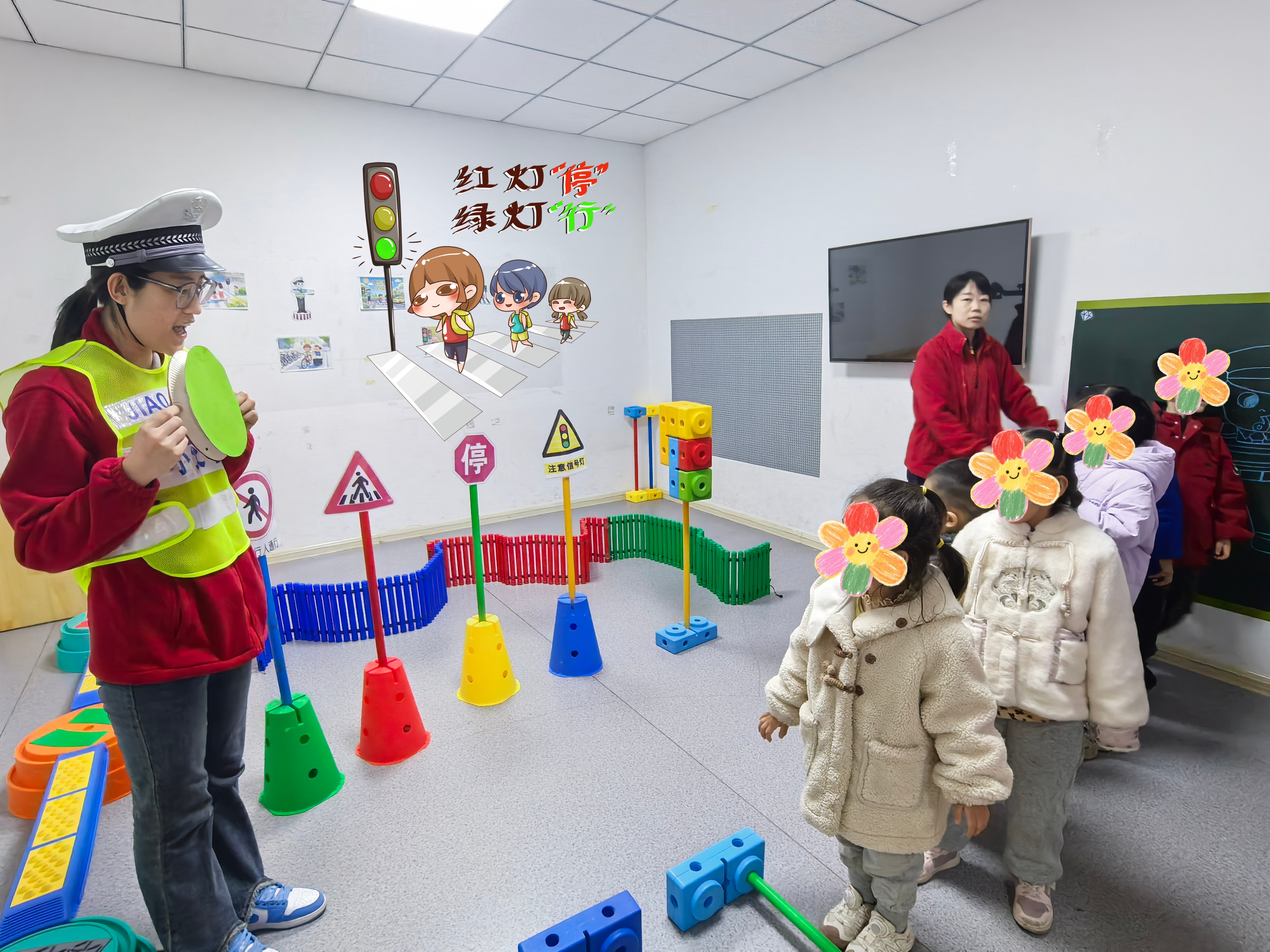 穿上小警服,手持指挥棒,我是神气的小交警!通过模拟交通路口,孩子们在游戏中学习“红灯停、绿灯行”等基本交通规则,从小树立安全意识。